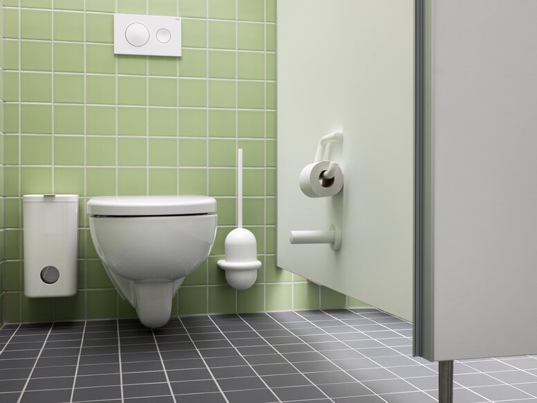 „Besonders praktisch finden wir die am Stützklappgriff montierte WC-Spülauslösung, die das Spülen im Sitzen per Knopfdruck ermöglicht“, so Nadya Faris-Bibawi. Zusammen mit den Accessoires der HEWI Serie 477, wie zum Beispiel der Hygienekombination oder der Bürstengarnitur in Reinweiß, verfügt die Grundschule mit HEWI über eine Systemlösung, die alle Anforderungen an die Ausstattung barrierefreier Bäder erfüllt und sich nahtlos in die moderne Schularchitektur einfügt, die SchülerInnen und PädagogInnen auf allen Ebenen beste Bedingungen zum Lernen und Lehren bietet.