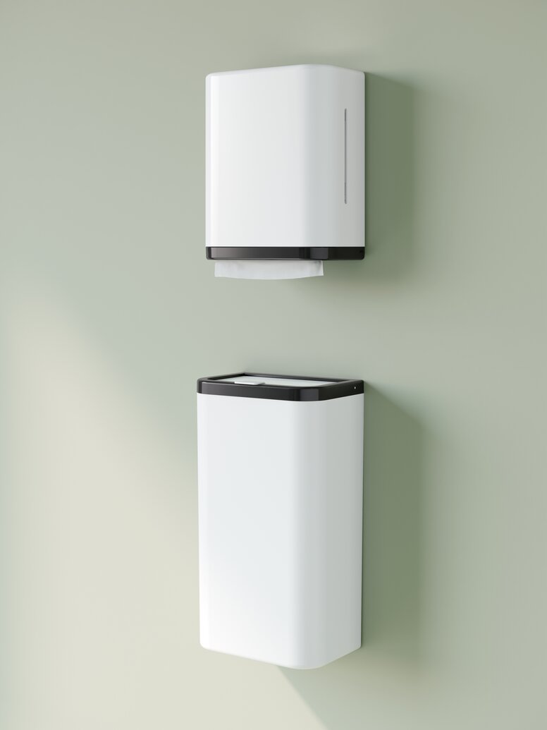 Johanna Radies: Die Serie 477/801 ist über die Jahre kontinuierlich gewachsen. Dennoch wurden trotz der hohen Sortimentstiefe nur vereinzelt Spenderprodukte wie der Papierhandtuchspender, Papierabfallbehälter und Seifenspender zur Serie ergänzt. Durch den steigenden Bedarf im Markt und HEWIs Kunststoff-Expertise ist die Erweiterung um ein ganzheitliches Spenderprogramm unabdingbar gewesen. Insbesondere in der professionellen Pflege und in hochfrequentierten öffentlichen Bereichen ist es essenziell, ein durchgängiges Hygieneangebot zu schaffen.
