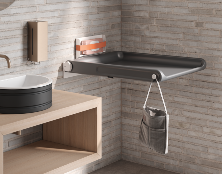 Der neue HEWI Babywickeltisch kombiniert eine leicht zu reinigende Liegefläche aus PUR-Schaum in Eisengrau mit robusten Metallkomponenten in Kornweiß matt. Das gebremste Absenken ermöglicht eine sanfte Handhabung, während seitliche Haken und ein Klemmfach zusätzlichen Komfort bieten. Der Wickeltisch vereint höchste Sicherheitsstandards und komfortable Handhabung mit modernem Design, das sich nahtlos in öffentliche Sanitärbereiche einfügt. Gestaltet wurde der Babywickeltisch von Holscher Design, einer renommierten und vielfach ausgezeichneten Agentur für strategisches Produktdesign aus Dänemark mit über 50 Jahren Erfahrung.