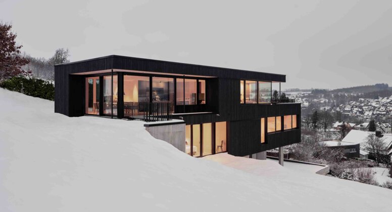 La durabilité n’était pas une option, mais une exigence conceptuelle. Le béton et le bois entrent dans un dialogue constructif. Le socle en béton assure durablement les fonctions de contact avec le sol et de support, tandis que les étages en bois, plus légers, permettent une préfabrication efficace, une grande flexibilité et un climat intérieur confortable. Une pompe à chaleur, un chauffage de surface et une ventilation contrôlée des pièces d’habitation complètent le concept. « Pour nous, la durabilité ne signifie pas répondre à des normes à court terme, mais mettre l’accent sur la longévité et l’adéquation des matériaux », résume Florian Schönauer. « Nous voulions créer une maison qui soit construite honnêtement et qui fonctionne encore dans 30 ans. »