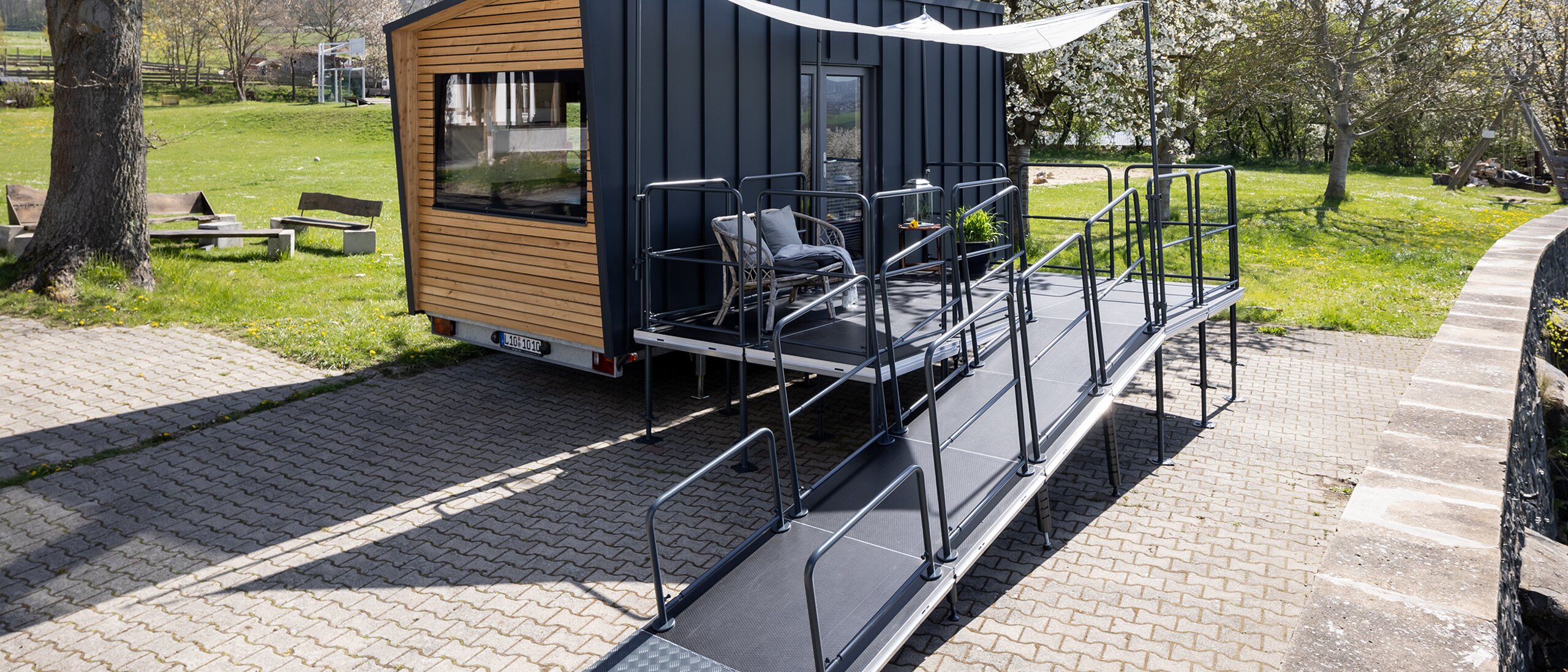 Christian Bock: Onze klant Jens Conrad benaderde ons. Hij is zelf rolstoelafhankelijk en wilde graag samen met ons een rolstoeltoegankelijk huis bouwen. Voor hem was het vooral belangrijk om in het tiny house met autonomie te kunnen wonen en leven – vooral tijdens zijn vakanties. Zijn ervaringen in hotels op zijn vakantiebestemming waren eerder negatief. Hoewel het hotel als barrièrevrij en drempelvrij omschreven werd, klopten ter plaatse de afmetingen niet, ging de deur naar de verkeerde kant open, was er niet genoeg ruimte, en ga zo maar door. Zijn wens was een ontspannen vakantie te kunnen beleven in zijn nieuwe onderkomen.