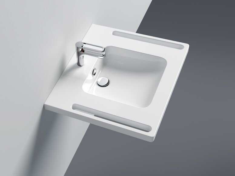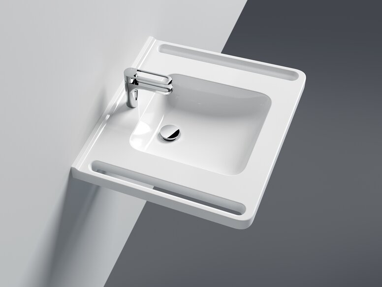 Modellen met geïntegreerde opnamemogelijkheden, hygiënische versies met een opstaande rand en zelfs oplossingen met variabele lengte bieden u een breed scala aan ontwerpmogelijkheden voor de apparatuur. Door hun diepte kunnen barrièrevrije wastafels flexibel worden gebruikt. Ze kunnen staand worden gebruikt - zelfs met krukken of een rollator - maar ook zittend in een rolstoel.