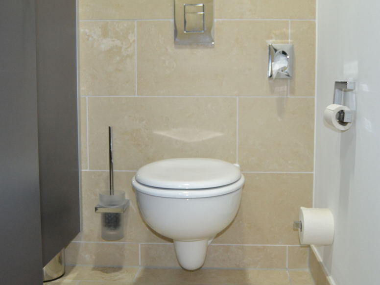 Pionowa struktura pierwotnych budynków KPM została przejęta przez efektowny projekt okien. Jasne linie są kontynuowane wewnątrz nowego budynku. Do wyposażenia pomieszczeń sanitarnych wybrano System 100 firmy HEWI