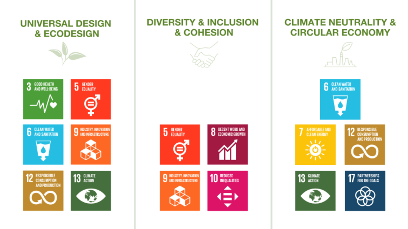 HEWI kieruje się zasadą 17 Celów Zrównoważonego Rozwoju ONZ (SDGs). (Sustainable Development Goals, SDGs). Strategia zrównoważonego rozwoju znajduje odzwierciedlenie w punktach "Universal Design & Ecodesign", "Diversity & Inclusion & Cohesion" oraz "Climate Neutrality & Circular Economy".