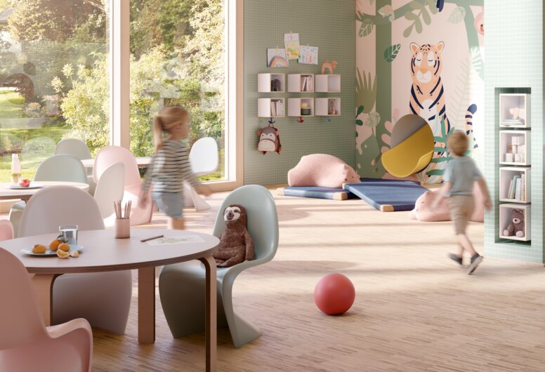 Elementarne potrzeby dzieci to bezpieczeństwo i pewność. W szkołach i przedszkolach powinny one być w szczególności zapewnione. Ponieważ dzieci postrzegają przestrzeń inaczej niż dorośli, ważne jest, abyś jako architekt dobrze przemyślał projekt kolorystyczny.