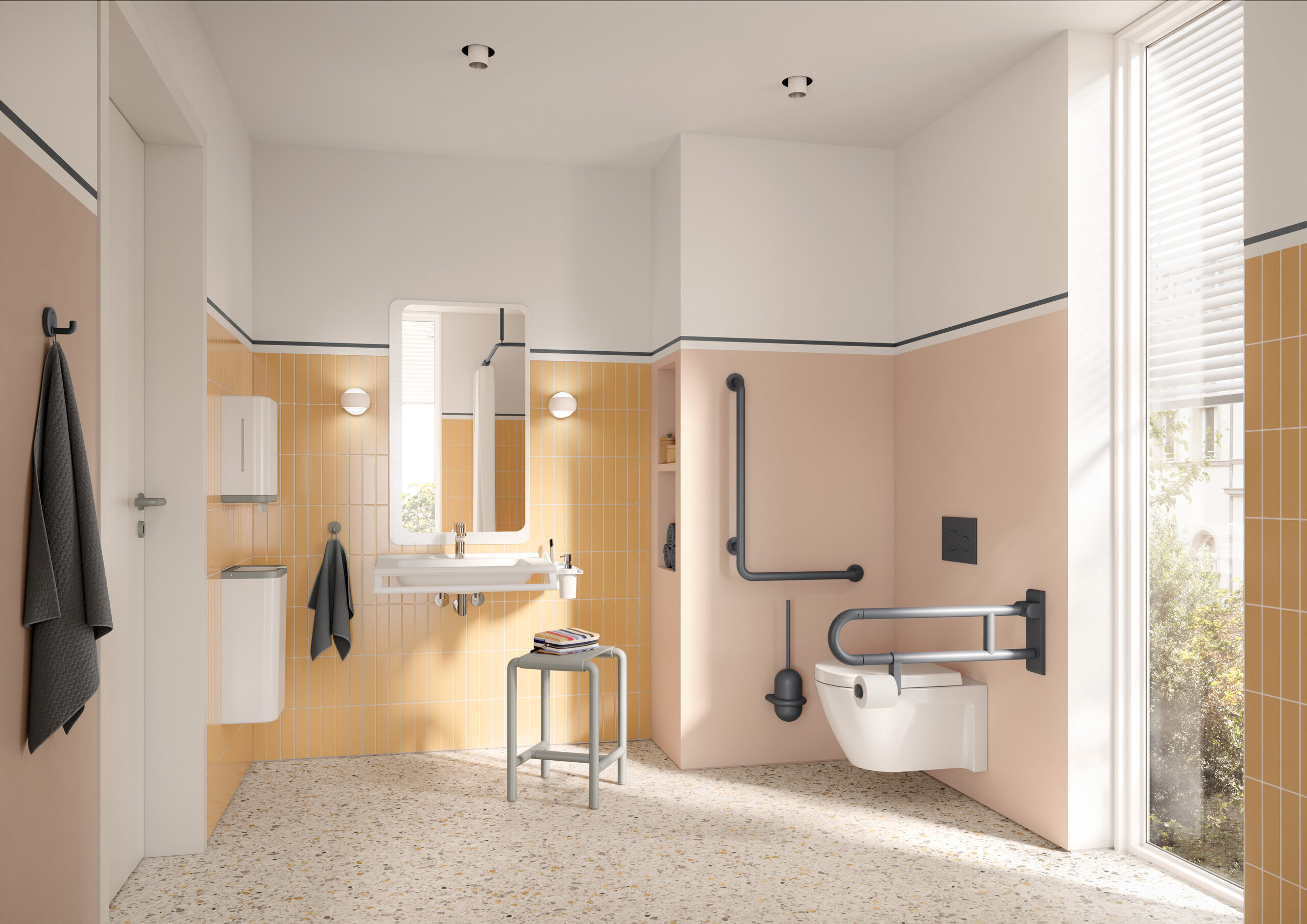 Seria 477/801 oferuje alternatywę wzornictwa w edycji matowej. Nadaje się do pomieszczeń sanitarnych w szpitalach, domach spokojnej starości lub domach opieki. Jest to także alternatywa do przestrzeni prywatnego domu. Wyjątkowa estetyka i nieograniczona funkcjonalność nie wykluczają się wzajemnie. Seria 477/801 jest dostępna w wersji matowej w różnych odcieniach bieli i szarości. Unikalna głębokość asortymentu, począwszy od akcesoriów sanitarnych, produktów wspierających komfort i akcesoriów do stref bez barier, a skończywszy na klamkach, umożliwia konsekwentne urządzanie wnętrz. Aksamitne wykończenie edycji matowej, osiągane jest dzięki specjalnemu procesowi uszlachetniania. Rezultatem jest unikalny design w najwyższej jakości, wykonany w Niemczech.