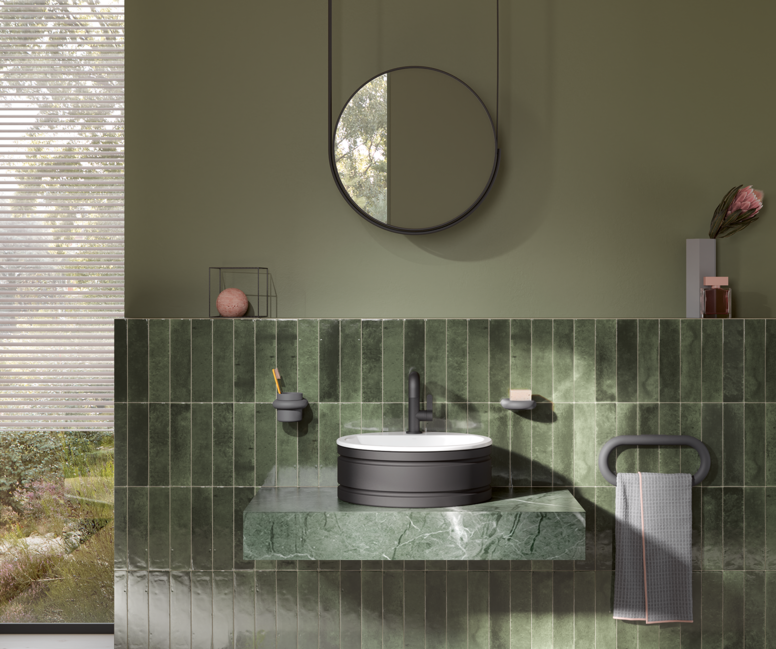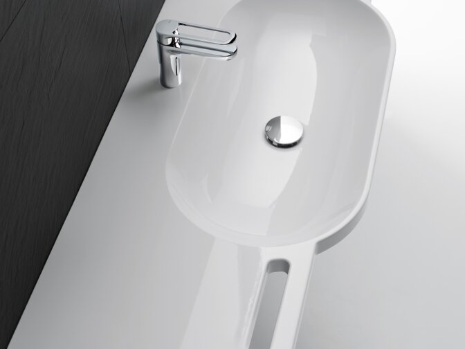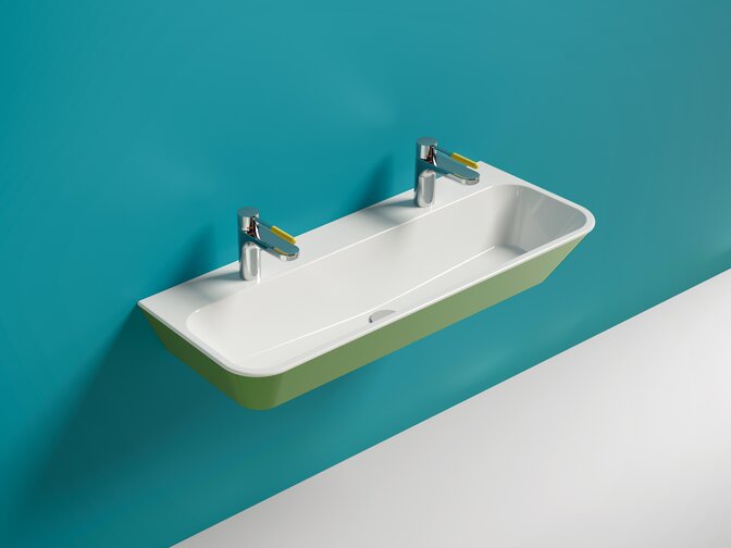 Innowacyjna koncepcja umywalki umożliwi integrowanie adaptacyjnego uchwytu i modułowego systemu przechowywania bezpośrednio na umywalce. Dostępna jest w trzech atrakcyjnych kolorach malowanych proszkowo, harmonijnie komponujących się z różnymi aranżacjami łazienki. Wysokiej jakości powłoka proszkowa przydaje umywalce eleganckiego wyglądu, sprawia, że powierzchnia jest wyjątkowo wytrzymała i zapewnia wygodny uchwyt.